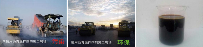 2、AJ-WMAA-02溫拌劑先加入瀝青中混合均勻,再泵入拌和樓與集料拌和(瀝青的0.4~0.6%)。
